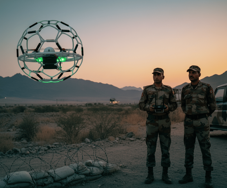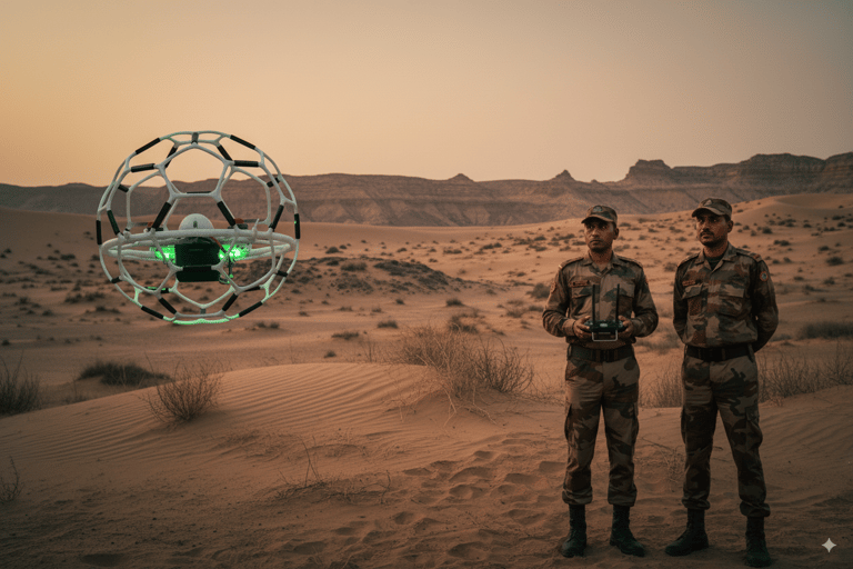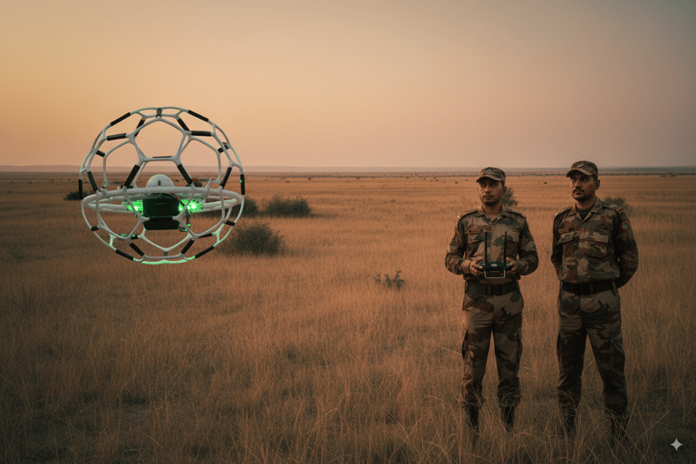 Drone Soccer Army Edition is developed by Devender Singh and Aditya Raj, combining drone engineering with defense-focused design. Backed by incubation at IITs, they are building India’s first indestructible drone sport system adapted for defense.